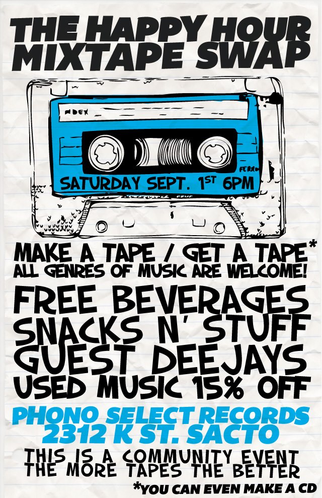 Phono Select is located at 2312 K street. Swap starts at 6:00. See you there, with my tape (or CD) in hand!