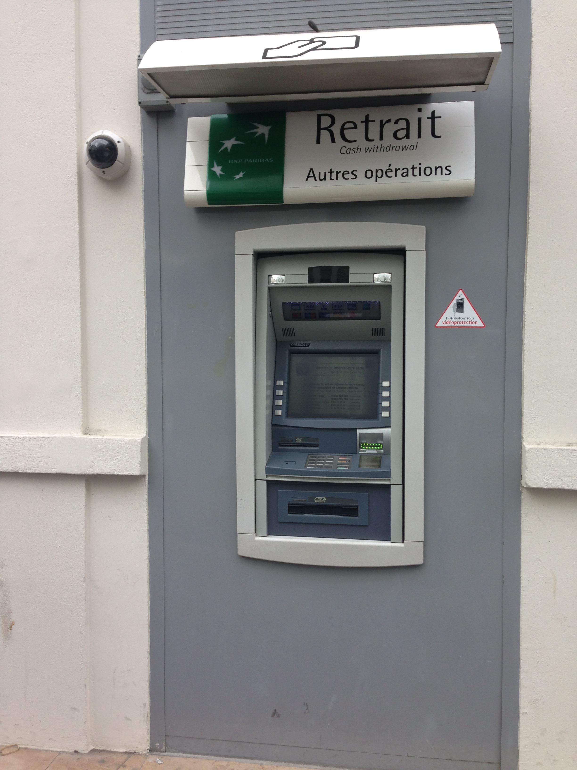 BNP Paribas ATM Published April 3, 2014 at 2448 × 3264 in An American In Paris: Week One in The City of a Million Chimney Pots ← Previous Next → Look for these to pull money. Make sure to ask your bank what ATMs to use before you go abroad though.