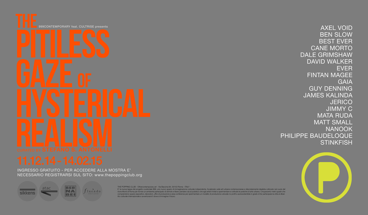 Heading to Rome this winter? Check out the new street art exhibit The Pitiless Gaze of Hysterical Realism at the The Popping Club. TUBE’s friends Cane Morto will be among the artists exhibiting. The show runs from December 11th to February 14th.