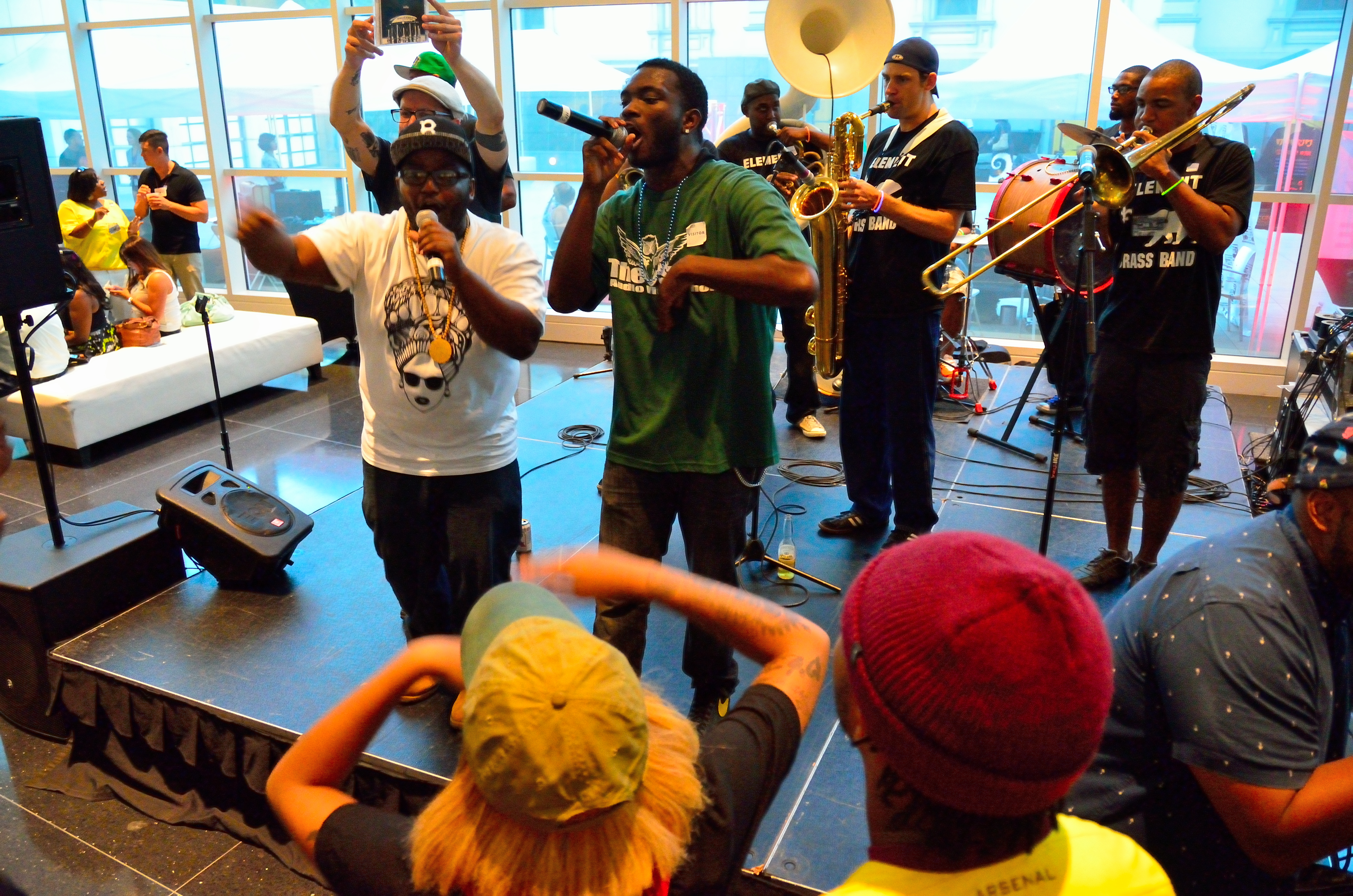 TUBE Magazine_Alexander Amaya_ZFG_4 Published February 8, 2015 at 4928 × 3264 in The Enlightening Efforts of the ZFG Collective. ← Previous Next → Feeling the FLOW — ZFG artists Paul Willis and Aerial spit freestyles over the tunes of Element Brass Band at Crocker Art Museum’s Hip Hop ArtMix. Photo: Alexander Amaya