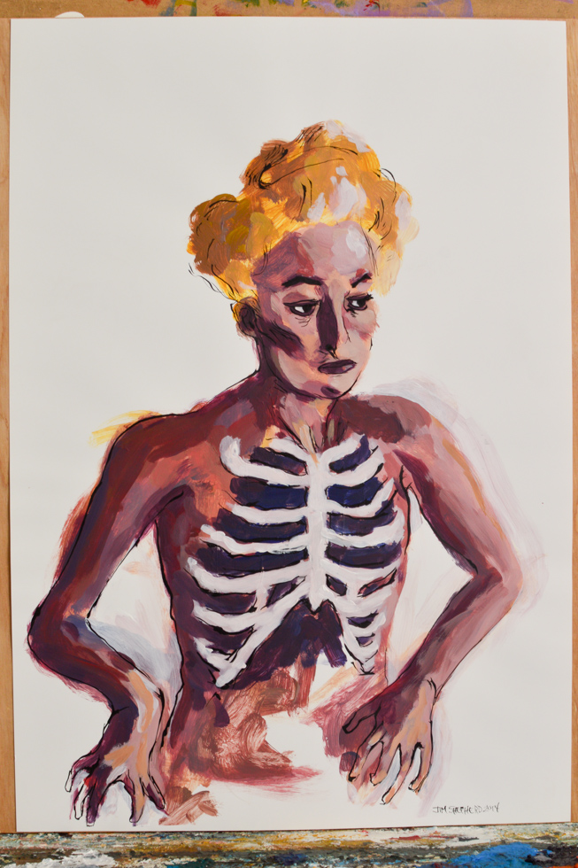 TUBE Magazine_2015_Alejandro Montaño_ Jim Shepard 5 Published March 23, 2015 at 653 × 980 in A Man Under Construction: The Work and Community Outreach of Jim Shepherd ← Previous Next → One of Jim Shepherd’s recent figure paintings. Instead of using a single tone of color for skin Shepherd layers shades of paint in order to build the skin tone and capture the light.