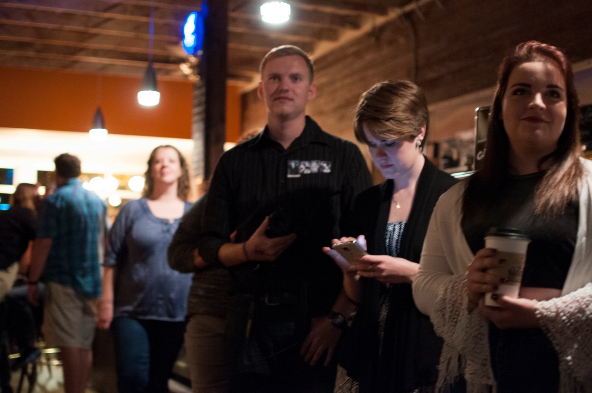 DSC_7945_2369 Published May 7, 2015 at 4288 × 2848 in Coffee in Hand, A Night with Sicfus, Embryo, and Big Water Beat ← Previous Next → Spectators enjoying a drink and the show at Shine in Sacramento CA. 2015. Photo Emma Montalbano.