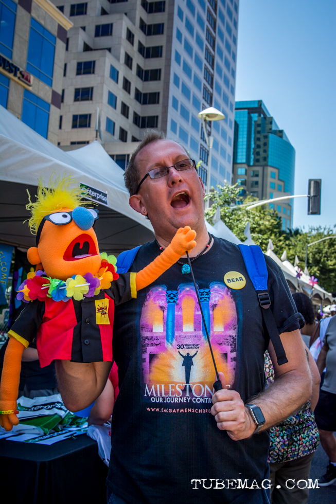SacPride_TUBE_Magazine_Sarah_Elliott_2015 (19) Published June 7, 2015 at 653 × 980 in Lipstick, Bare Cheeks & Razzle-Dazzle at Sacramento Pride 2015 ← Previous Next → Man poses with a muppet at Sac Pride 2015, Photo Sarah Elliott