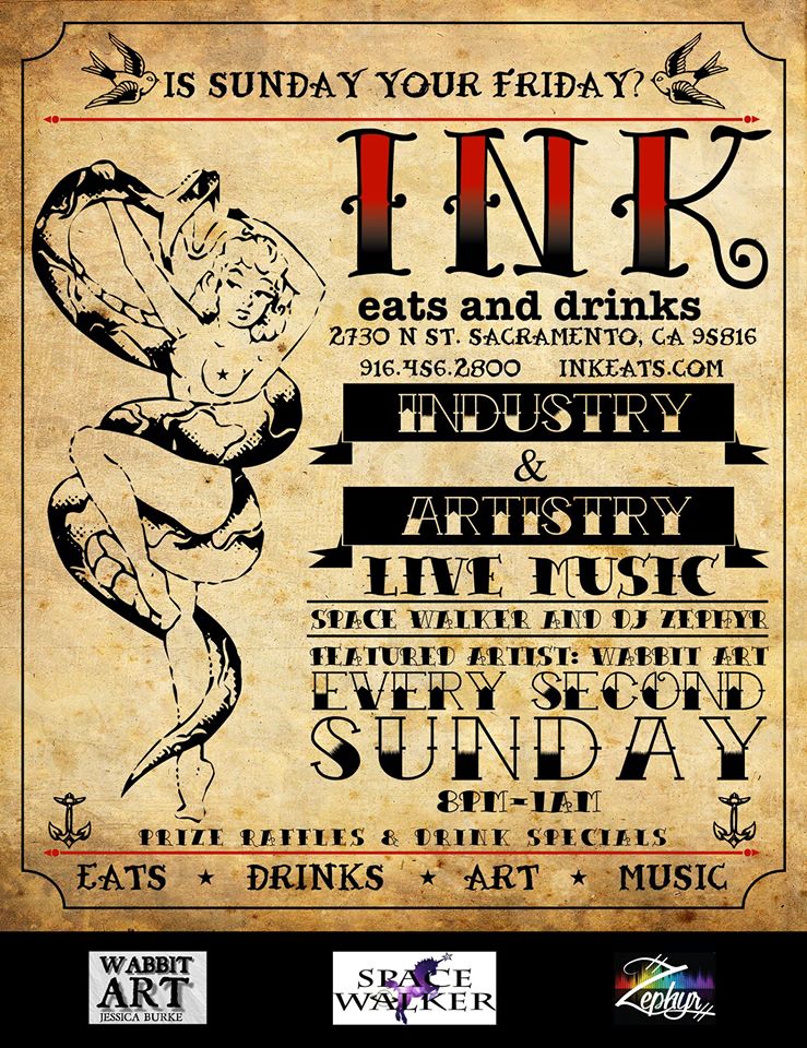 This new event is happening every second Sunday and features different artists and musicians from all over Sacramento. From 8pm-1am, guests will be able to enjoy the art on the walls, music around the room, drink deals, and raffle prizes. For this upcoming shindig, Spacewalker and DJ Zephyr will be electrifying the restaurant while WabbitArt by Jessica Burke hangs around the space for all to admire. Make Sunday the new Friday at Ink Eats and Drinks this weekend! For more information and special drink codes for the night, click here.