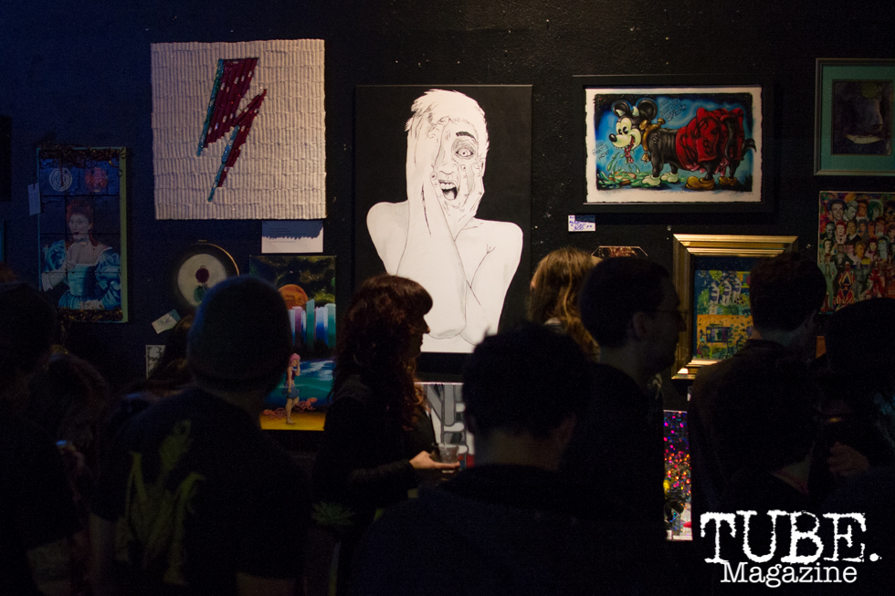 TUBE_MAG_DAVID_BOWIE_ALEJANDRO_MONTANO-2 Published February 15, 2016 at 980 × 653 in See: Life On Mars. Next → Blue Lamp had a full house of artwork inspired by David Bowie and plenty of people to admire it. Sacramento, CA. February 2016. Photo Alejandro Montaño
