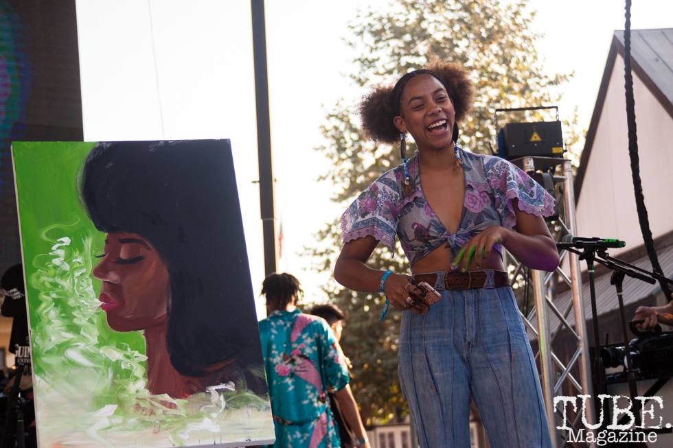 TUBE_Magazine_2017_Cam Evans-20 Published September 21, 2017 at 980 × 653 in See: HOF Day 2017 ← Previous Next → Aliyah Sidqe during the Art Battle against Lisa Elias at HOFDAY in Sacramento, CA (9/16/2017). Photo Cam Evans.