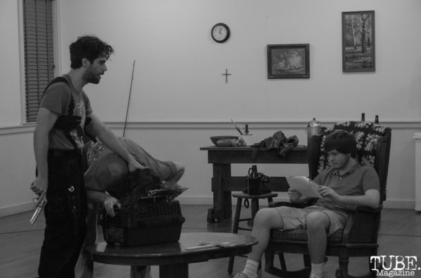 Driving along Mills Station Road and seeing a row of granite supply warehouses and storage facilities, one can feel that nothing special happens in this part of Rancho Cordova. That is how I felt pulling into the parking lot of the Mills Arts and Culture Center, whose building doubles as a bus terminal. Earlier that week, I was granted access to sit in on the rehearsals for The Lieutenant of Inishmore, a black comedy written by Martin McDonagh in 2001 about an Irish national whose usual day of torturing drug pushers is interrupted when his cat is killed.