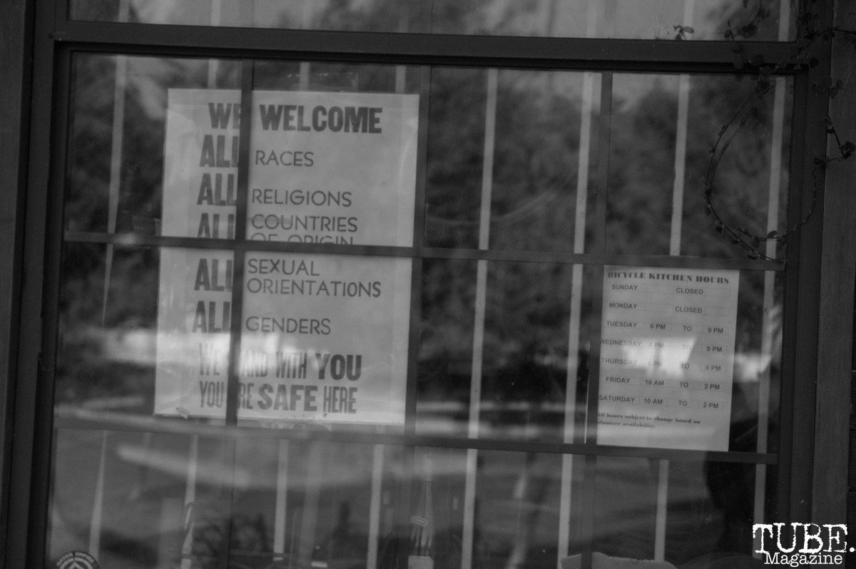Benz_Doctolero_TUBE_2018_01 Published July 17, 2018 at 6016 × 4000 A sign outside the Sacramento Bicycle Kitchen, Sacramento, CA. July 14, 2018. Photo Benz Doctolero