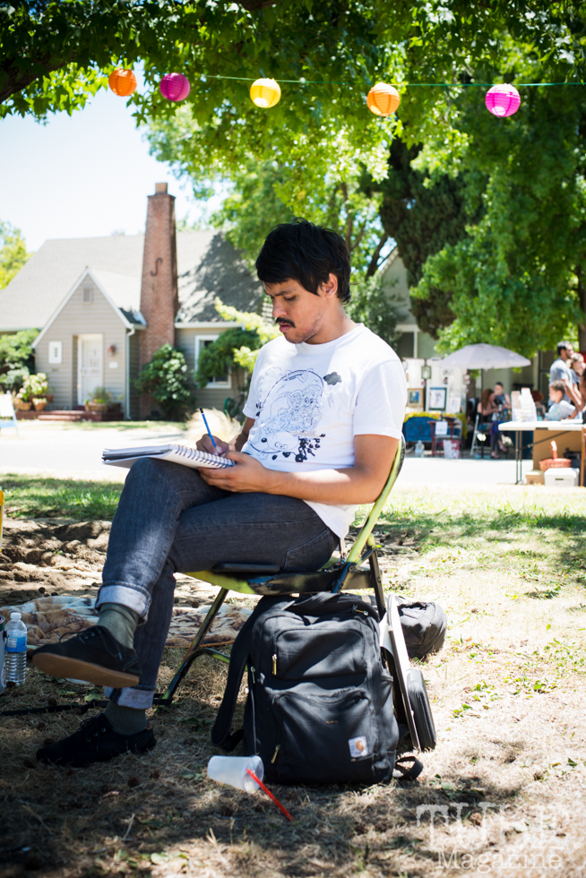 TUBE_Mag_Melissa_Uroff_2016-4 Published July 9, 2016 at 654 × 980 Waylon Horner drawing at the Crocker Block by Block Party in District 5, July 9, Sacramento CA. Photo Melissa Uroff